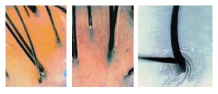 ![]() 頭皮も皮膚としくみは同じ。 頭皮のしくみ 頭皮も、皮膚と同じしくみで、表皮の一番下の基底層では、 常に新しい皮膚細胞が作られて、 形を変えながら徐々に表面に押し上げられ、2週間程度で角質細胞となります。 さらに2週間程度たつと、角片となって自然にはがれ落ちていき、 約4週間、28日周期で、地肌は新しくなっていきます。 フケ(頭皮)やアカ(その他の部分)は、この角質層からはがれた角片なのです。 ![]() 頭皮の皮脂腺数は、Tゾーンの2倍以上! 頭皮は、体の中でもっとも皮脂腺が多く、とても汚れやすい部分で、 顔のTゾーンの2倍以上もの皮脂腺があります。 シャンプーで皮脂などの汚れが十分に落としきれていないと、 細菌が繁殖し、嫌なにおいを発生させ、 そのまま放っておくと、かゆみやフケの原因ともなります。 また、古い皮脂が、頭皮の毛穴につまると、 毛根のまわりが炎症を起こし、 血行が悪くなり、毛根に栄養が行きわたらないため、 健康な髪が育ちにくく、抜け毛に繋がります。 地肌は、髪を育む“大地”のようなもで、 髪の健康のためにも地肌を清潔にして、 健康に保つことが大切です。 ![]() タイプ別頭皮の状態!